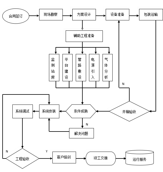 分析屋:系統部件環境溫度:5~40℃;系統部件環境溫度:-20~50℃;濕度:≤90%;建議在脫硫塔平臺部位設置分析小屋或者安裝在原來的分析儀設備間,原則為在保證滿足設備條件要求,數據輸出準確,設備正常運行的情況下,盡量使取樣管長度縮短,便于觀測和維護。